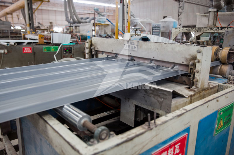 擠出成型后的片材需要經(jīng)過一系列的后續(xù)加工才能成為我們常見的樹脂瓦。首先是對擠出成型后的片材進行切割,使其長度符合實際需求。然后,對切割好的片材進行壓型,即將其放置在模具上,通過加熱和壓力使其形成波浪形的表面。這一步的目的是使樹脂瓦表面呈現(xiàn)出自然的瓦楞紋理,提高其美觀度和抗壓性能。壓型好的片材進入恒溫恒濕的設(shè)備中進行固化,使其內(nèi)部的PVC分子鏈逐漸交聯(lián),從而提高其硬度和強度。